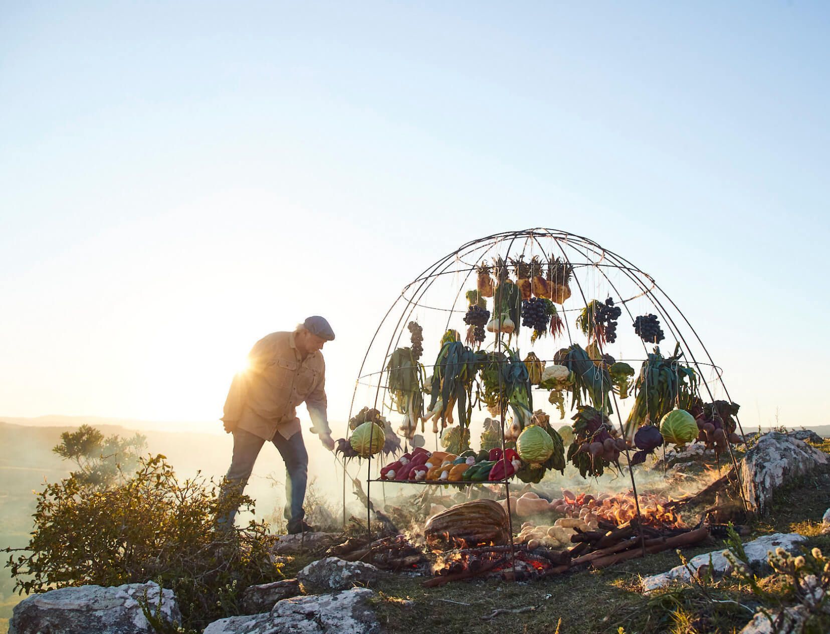 In Patagonia, Francis Mallmann cooks as if the land itself is part of his recipe. Whole vegetables char directly in embers. Meat roasts slowly over open flames, sometimes for an entire day. Even bread gets kissed by smoke.