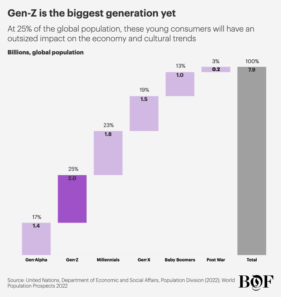 Currently, Gen Z’s are responsible for 5% of U.S. spending, yet Gen Z’s economic clout is projected to soar to 17% by 2030, according to Ecocart.